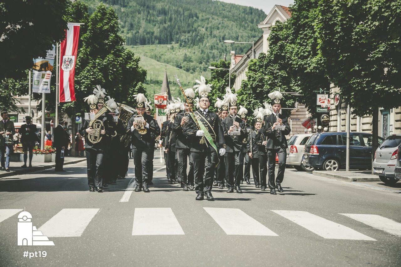 Bergparade der Berg-, Knappen- und Hüttenvereine Paraderoute: Evangelische Kirche – Franz Josef Straße – Hauptplatz